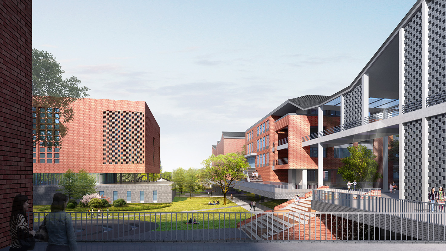 設(shè)計(jì)背景: 布局合理、緊湊高效、簡(jiǎn)潔大方、氣質(zhì)高雅,靈動(dòng)韻律”是本方案的設(shè)計(jì)特點(diǎn)。 1.理性的教學(xué)空間 學(xué)校既是學(xué)生接受教育并進(jìn)行信息專遞的理性空間,也是學(xué)生相互之間進(jìn)行情感交流的感性場(chǎng)所。因此,我們提出理性與感性相結(jié)合的設(shè)計(jì)理念,利用傳統(tǒng)的四方院落布局與入口的開(kāi)闊廣場(chǎng)塑造一個(gè)理性、包容的教學(xué)空間。 2.多樣化的庭院空間 因?yàn)閷W(xué)校各建筑功能的豐富性以及獨(dú)特性,我們將建筑進(jìn)行人為的動(dòng)靜分區(qū)以保證其良好的教學(xué)秩序,但是各功能區(qū)通過(guò)連廊相連接,圍合成多變的組團(tuán)空間,不同尺度的內(nèi)庭院相串聯(lián),營(yíng)造出安靜、舒適的教學(xué)與活動(dòng)環(huán)境。 3.包容的入口廣場(chǎng)區(qū) 學(xué)校的主入口為整個(gè)學(xué)校的形象展示區(qū),設(shè)置在基地南面,由教學(xué)科技樓、綜合樓和圖書(shū)館三面圍合而成,形成開(kāi)放、包容、向上的文化形象。