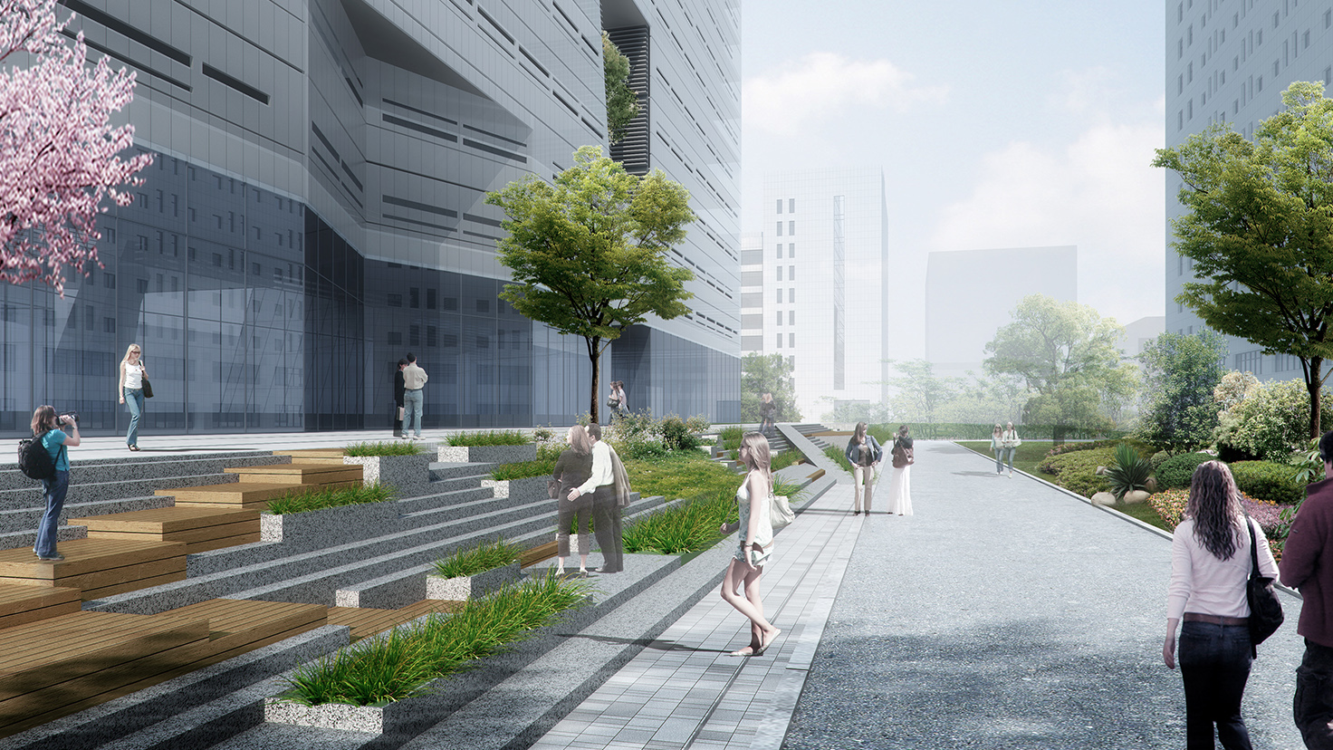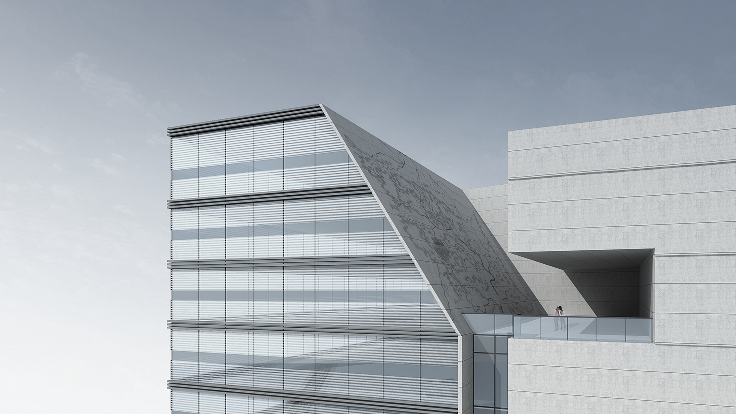 設計背景:一條湘江橫貫古今,見證了長沙城市建設的發展。城建信息中心整體造型猶如砌筑的城市,歷史的長河---湘江穿行而過,將建筑立面從中劈開,成為建筑最精彩的部分,城建史華麗的篇章從此處展開。 新時代的城建信息中心將回歸服務市民的文化性本質,成為一個集查閱、展覽、休閑和存檔功能于一體的多功能建筑,一個開放親民的城市文化會客廳。 項目緊鄰公共資源交易中心和工務局,同為市政府辦公用地。新建成的城建信息中心可以定性為一個充滿多樣性、開放度、包容性和人文館關懷的城市休閑公園融入其中,串聯起周邊零散的休閑場所,成為城市重要的公共文化建筑。