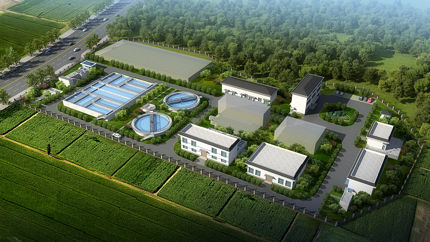 項目規模:工程規模:贛湘邊區域合作宜春產業園第一期項目包含:標準廠房、道路(迎賓大道、安新路及安業路南段)、門戶公園、污水處理廠四部分組成,其中標準廠房建設用地規模約332畝,總建筑面積約30萬平方米;道路總長約10.9km,其中迎賓大道全長約4.5km,安新路全長約3.8km,安業路南段全長約2.6km;污水處理廠規劃規模約為2萬t/天,本次設計規模1萬t/天。